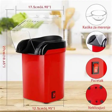 Transforma tus momentos de cine en casa con la Máquina de Palomitas "Pop Corn Maker" en color rojo. Con una potencia de 1.2 kW, esta máquina utiliza un sistema de cocción por aire caliente, asegurando que cada bocado sea crujiente y delicioso, sin necesidad de aceites añadidos. Su diseño elegante y retro no solo es funcional, sino que también agrega un toque de estilo a cualquier espacio.